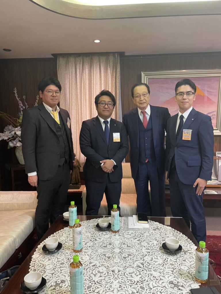 2025年10月22日、飯田理事長と堤次年度予定者ともに、スポンサーJCである松戸青年会議所 名誉会員の井奥貞雄先輩のもとへ、鎌ケ谷青年会議所50周年式典のご案内で表敬訪問をしてまいりました。