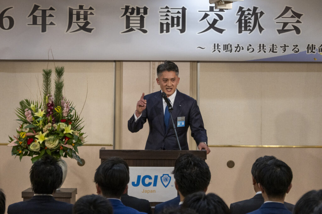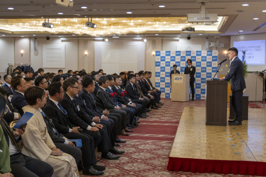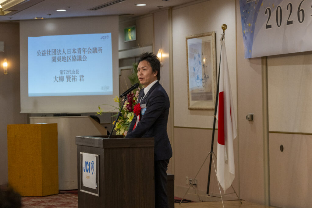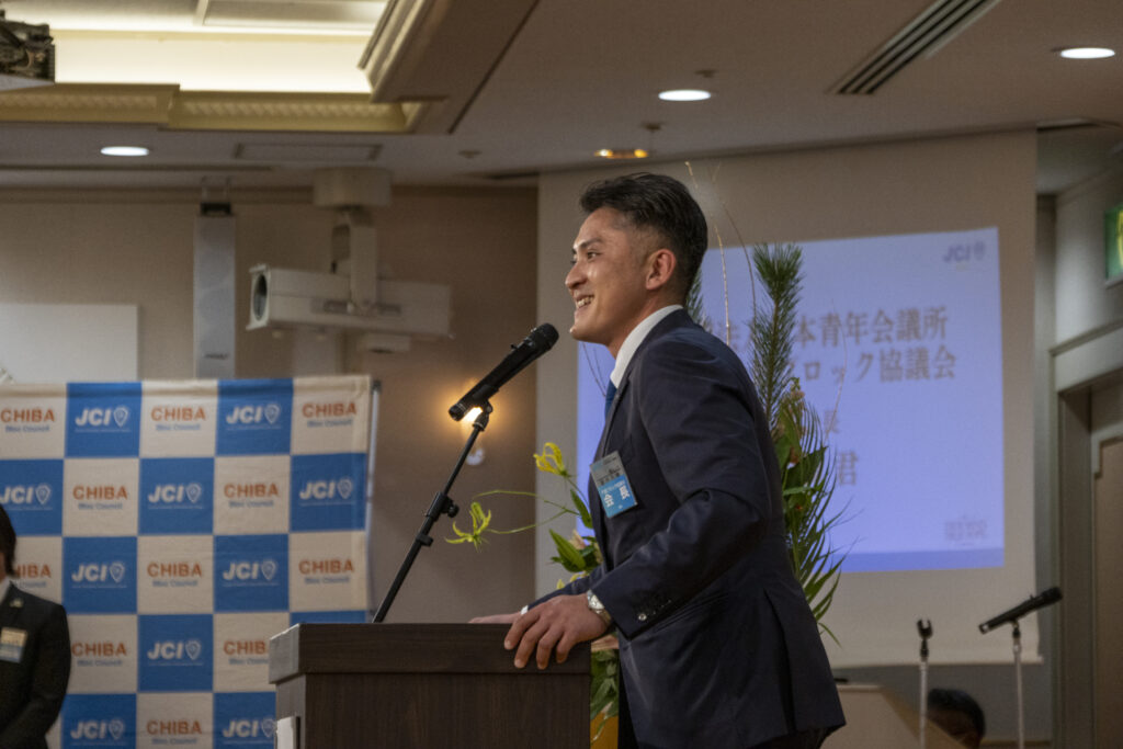 式典では、千葉ブロック協議会 会長によるご挨拶をはじめ、千葉ブロック協議会に所属する本年度各地青年会議所理事長によるスローガン報告などが行われ、2026年度の運動方針や想いが共有される場となりました。