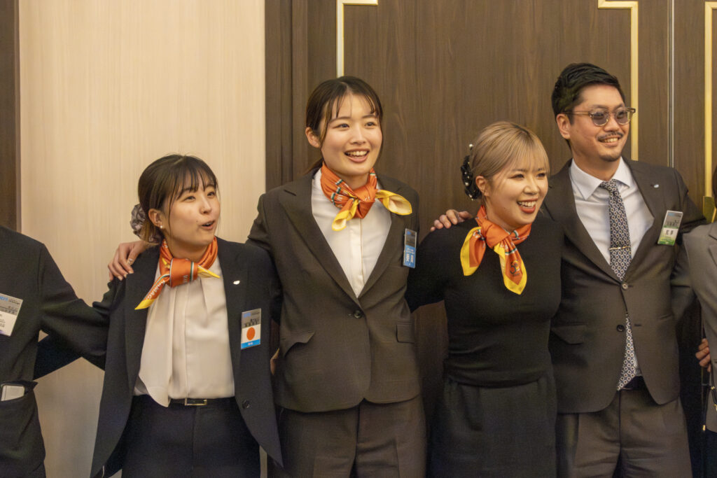 これまで鎌ケ谷青年会議所を支えてくださった多くの先輩諸兄姉や地域の皆様への感謝の想いを胸に、その歴史を次の世代へとつなげていく意味が込められています。緑色の法被、オレンジ色のネクタイ・スカーフはいずれも、歴代の周年や運動の流れを汲んだものであり、過去から未来へと続く想いを表現しています。